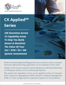 The proven VoC questions in here can be applied to Voice of Customer (VoC), Experience Management (XM) Enterprise Feedback Management (EFM) or Listen, Analyze and Act Experience Systems For Any Audience